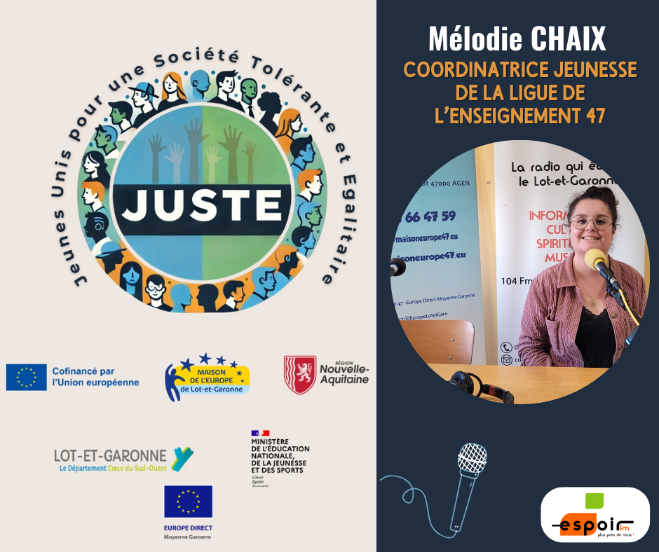 Mélodie CHAIX est chargée à la Ligue de l’Enseignement de Lot-et-Garonne du service Jeunesse. Lors de la journée de sensibilisation à l’égalité Femme-Homme à la Maison de l’Europe de Lot-et-Garonne elle a bien voulu nous présenter ses missions d’éducation populaire.