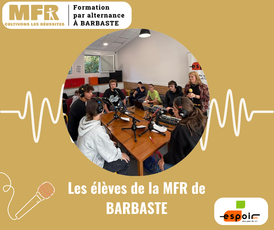 Votre radio Espoir FM c’est aussi sensibiliser nos jeunes à la liberté d’expression et à la découverte des métiers de la radio. Au travers d’un atelier-radio, les élèves de la MFR de Barbaste nous racontent leur quotidien au sein de la Maison Familiale Rurale : leur formation, leurs projets et la vie à la MFR