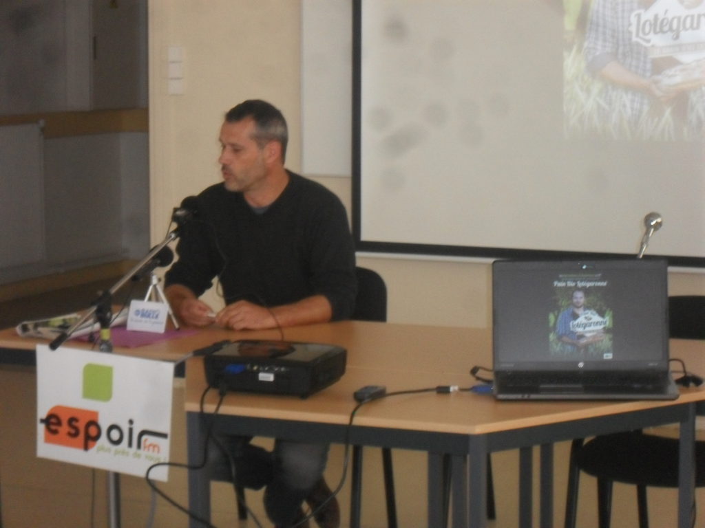 Première conférence avec Jean-Christophe Chassaigne, agriculteur, producteur de céréales bio. La deuxième sera quant à elle avec Jacqueline Calendreau de l’association EM. Conférences qui ont eu lieu lors du Salon Professionnel « Acheter Bio et Local » au MIN d’Agen le 19 septembre 2016.