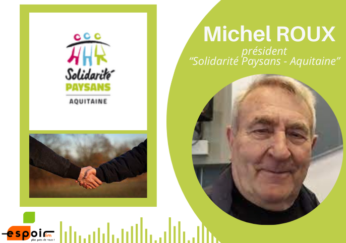 Michel Roux, président de l’association « Solidarité paysans » Aquitaine. Ses bénévoles salariés écoutent, soutiennent, renseignent, accompagnent les agriculteurs en difficultés. Émission réalisée par : Emmanuelle