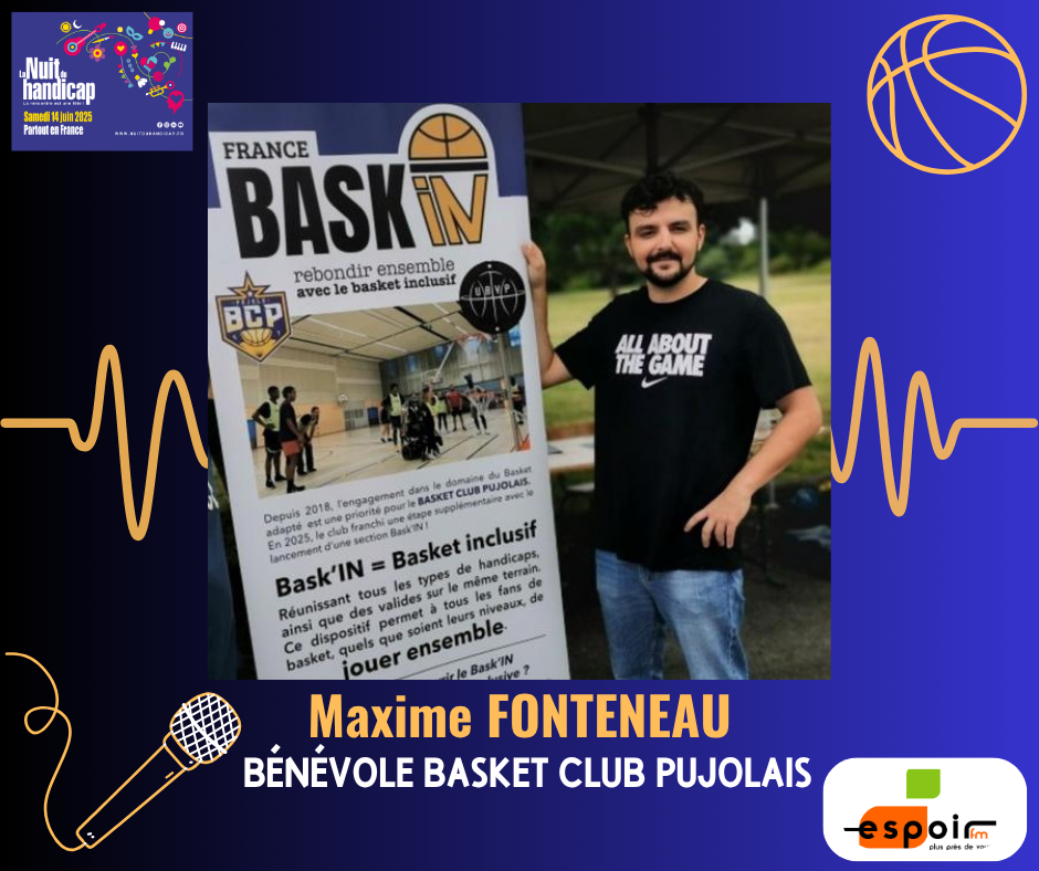 Maxime Fonteneau, bénévole au Basket Club Pujolais, nous parle du développement du basket inclusif, le Bask’IN mais aussi de la dynamique qui anime le club. Un bel exemple de sport accessible à tous, porté par la passion et l’engagement. Émission réalisée par : Aurélie