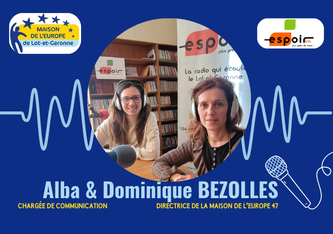 Dominique BEZOLLES, la directrice de la Maison de l’Europe de Lot-et-Garonne – Europe Direct Moyenne Garonne est venue accompagnée d’Alba, chargée de communication. Émission réalisée par : Aurélie