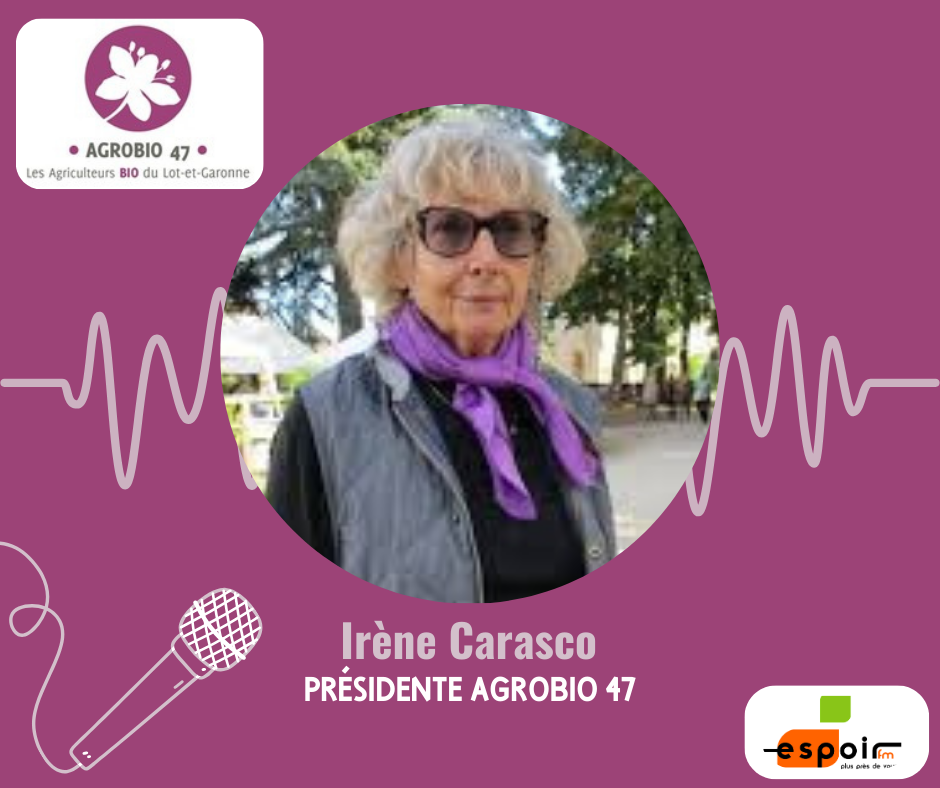 Irène CARASCO, la présidente Agrobio 47. Elle présentera la Foire des producteurs Bio de Villeneuve sur Lot de ce dimanche 18/09. 🍏🥕🍅🍇🥝 Emission réalisée par : Aurélie