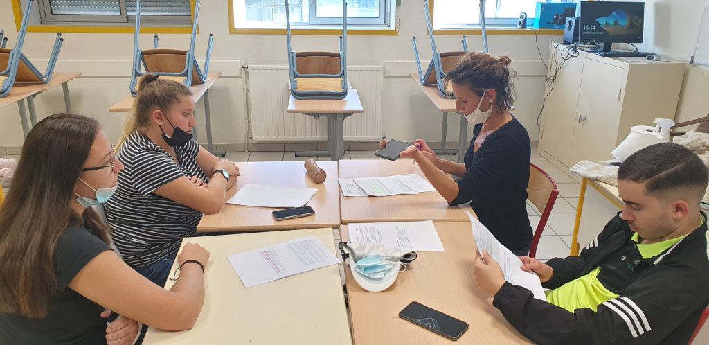 Stéfania Spinapolice, Animatrice à la Maison de l’Europe de Lot-et-Garonne/Europe Direct et des élèves du Lycée Val de Garonne de Marmande avec Céline Kuric, professeure de Lettres-Histoire/ Ambassadrice Sénior Europe Emission réalisé par : Ketsia