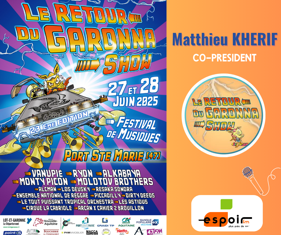Matthieu Kherif, co-président du Garonna Show, nous dévoile les grandes lignes du retour de ce festival incontournable à Port-Sainte-Marie. Une programmation 2025 festive, variée et familiale, à ne pas manquer ce weekend. Émission réalisée par : Aurélie