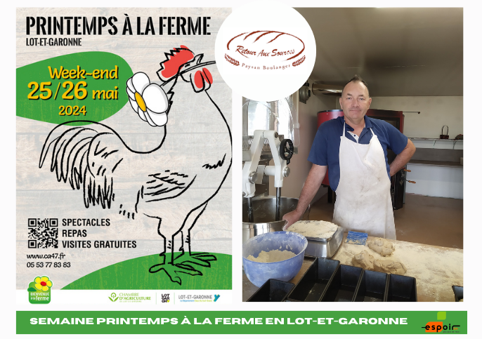 Pascal CAPITAN, Paysan boulanger. Dans le cadre du Printemps à la Ferme, il propose une visite de sa boulangerie paysanne « retour aux sources » à Clairac où il produit du petit épeautre en Bio qu’il transforme entièrement en farine puis en pain dans son fournil. Émission réalisée par : Emmanuelle