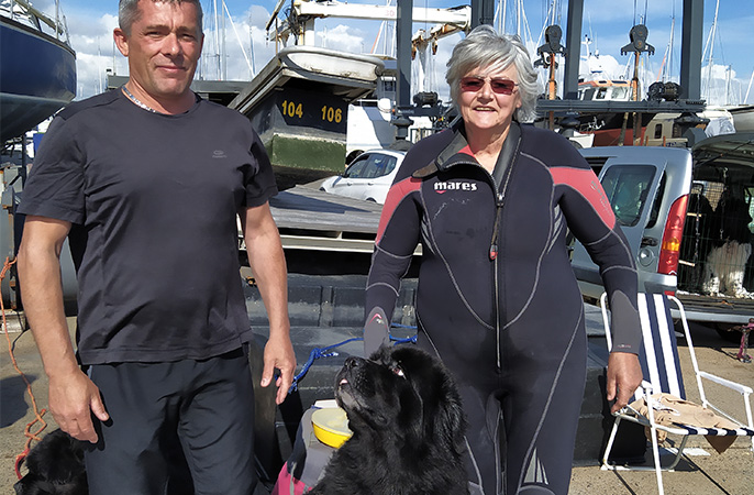 Yves Causset et Eliane Roussel, Membres de l’ASCE L’association sportive des chiens de sauvetage à l’eau entraîne des chiens » terre neuve « à secourir, en bord de mer, essentiellement les nageurs en difficulté, l’association est présente sur le port des sables d’Olonne. Émission réalisée par : Emmanuelle Guibert